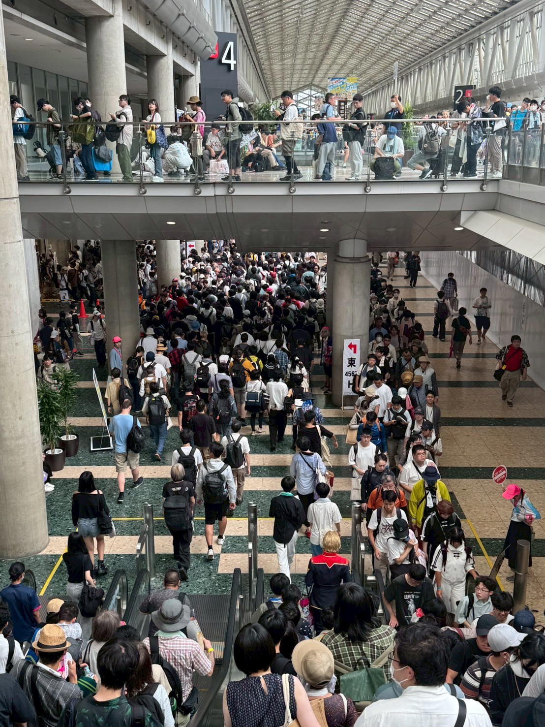 近年午前入場リストバンド型参加証の事前販売が当日を待たずにほぼ完売となっており、購入を希望される方に行き渡らないのも、申し訳なく思っています。こちらも一般待機列の面積により受け入れられる人数が制約されることと、前述の通り、大規模改修工事の影響で通路が狭くなっていて、展示棟間の行き来を考えると軽々に一般参加者の数を増やせないという事情があります。一般参加者の入場方法の見直しについては、大規模改修工事が終わり、導線が確実に確保できるようになった後に行いたいと考えていますが、深夜来場者がほぼいなくなった現状もあり、アーリー入場チケットについては、何らかの形での継続を考えています。