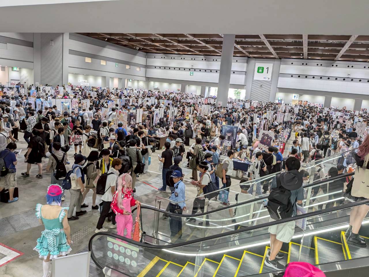 この夏の参加者数は1日目13万人。2日目12万人ののべ25万人となりました。コロナ禍後最大の参加者数となった昨年の冬と比べるとマイナス約5万人ですが、昨年の夏との比較であれば約1万人減の数字です。気候の影響もあり、近年冬開催の方が参加者の集まりやすい傾向にありますが、特に昨冬は大晦日を外した日程が参加者増に繋がったところもあり、逆に、今夏は会場からの要請により開催日程が通常の夏より一週間遅かったことの影響もあるようにも思います。加えて、前述の大規模改修工事で東1〜3ホールが使用できず、代わりに南1〜2ホールをサークルスペースとしたものの、サークルの総数が大きく減少していますので、その分サークル参加者数も、そして、それらのサークルを目当てとした一般参加者数も減ることとなります。C107ではサークル申込スペース数が、コロナ禍後最大となったことも含め、準備会としては、コロナ禍後のゆるやかな回復基調が大枠としては続いていると考えています。