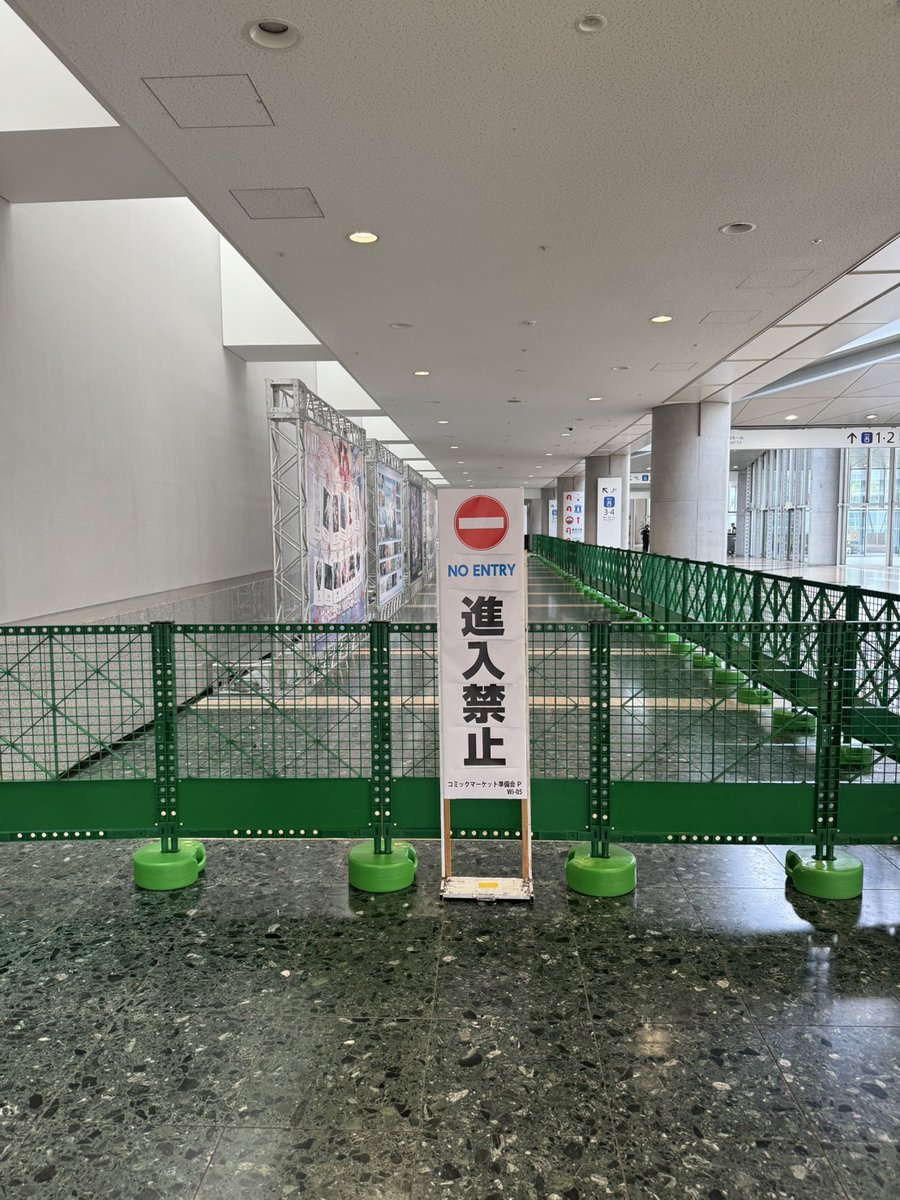 2023年12月から始まった東京ビッグサイトの大規模改修工事ですが、2024年8月迄の会議棟の改修工事、2025年1〜6月の西展示棟の改修工事に続き、2025年7月からはついに東展示棟の工事が始まりました。2025年度下半期は東1〜3ホールが、2026年4月〜12月迄は東4〜6ホールが使用できません。この結果、使える場所も開催時期も必ずしもコミケットの希望が叶う状況とはなっていません。また、東地区ガレリアの幅も工事に伴う囲いで大幅に削減されており、導線が細くなっています。