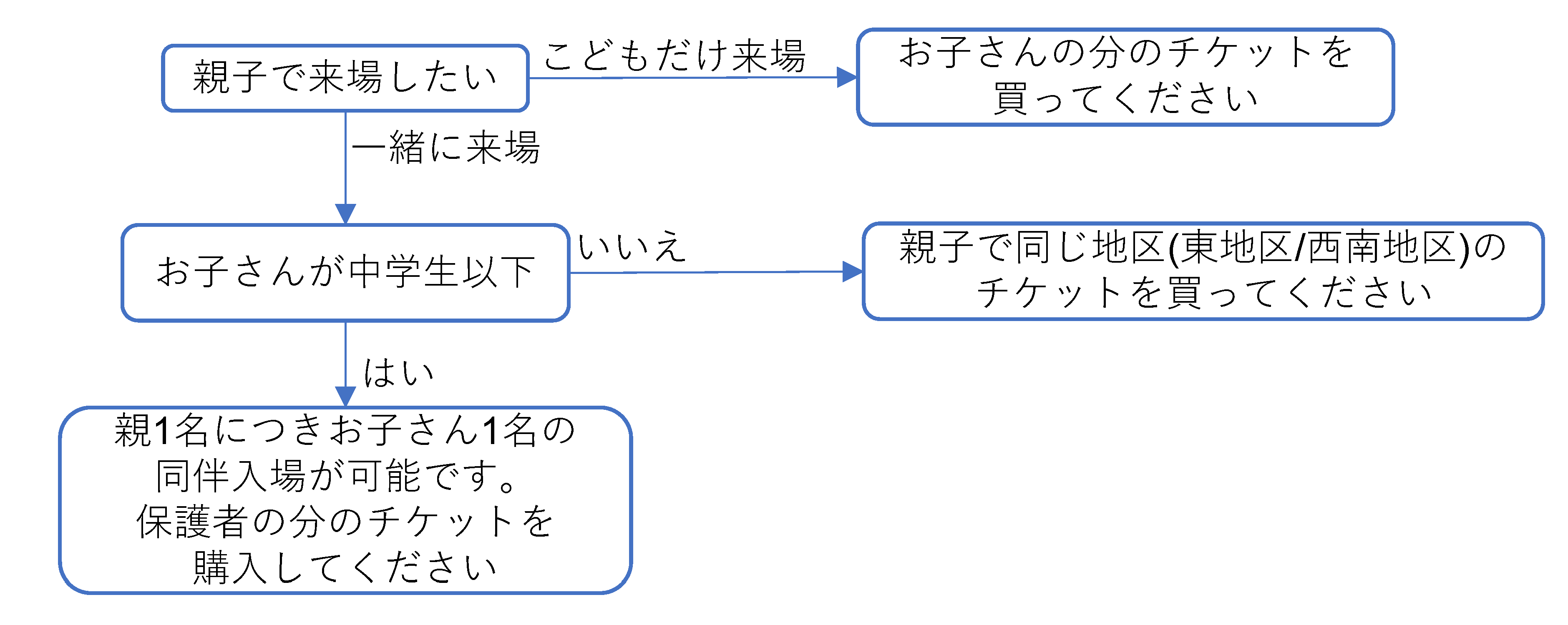 - 中学生以下は保護者1名につき1名まで入場証券なしで入場可能です。ただし、保護者同伴でない場合は中学生以下でも入場証券が必要です。